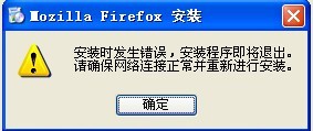 很多朋友下载的全新火狐浏览器安装不了,安装过程中会报错,错误内容:安装时发生错误,安装程序即将退出。请确保网络连接正常并重新进行安装。如下图: