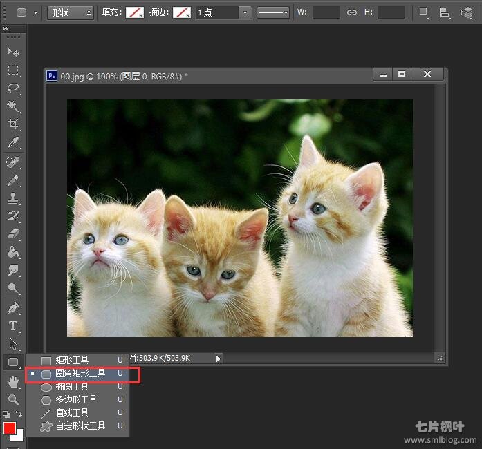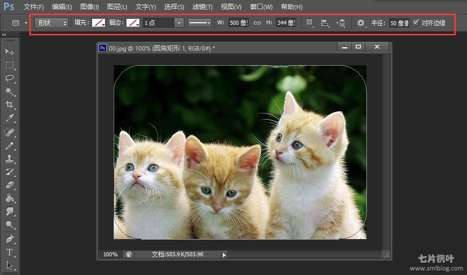 在图上画圆角矩形,选择好参数,这里选择的半径为50像素: