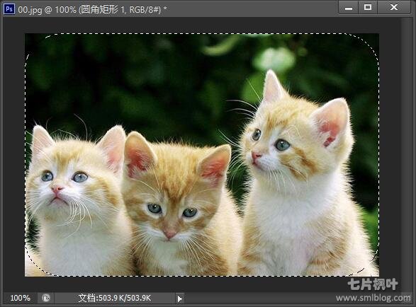 之后,选择图层,按:DELETE 删除反选的地方,圆角就出来了:
